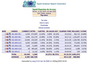 Una vez puesto en marcha, empieza el log de squid a registrar los destinos de los usuarios, que es de donde sarg obtiene los reportes.