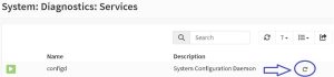 Lo que sigue es reiniciar el servicio: configd, para estos nos vamos a System->Diagnostics->Services